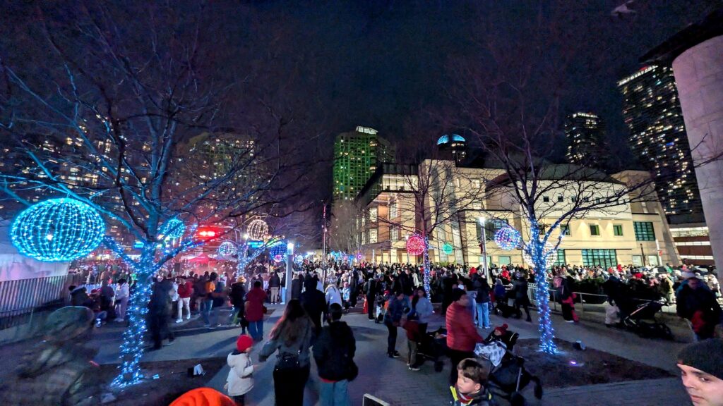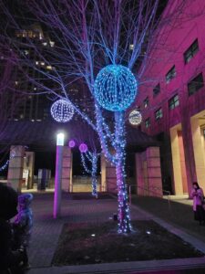 City of Mississauga Holiday Lighting Installation – 30-Foot Tree, 100 Light Spheres & 16 Festive Bows