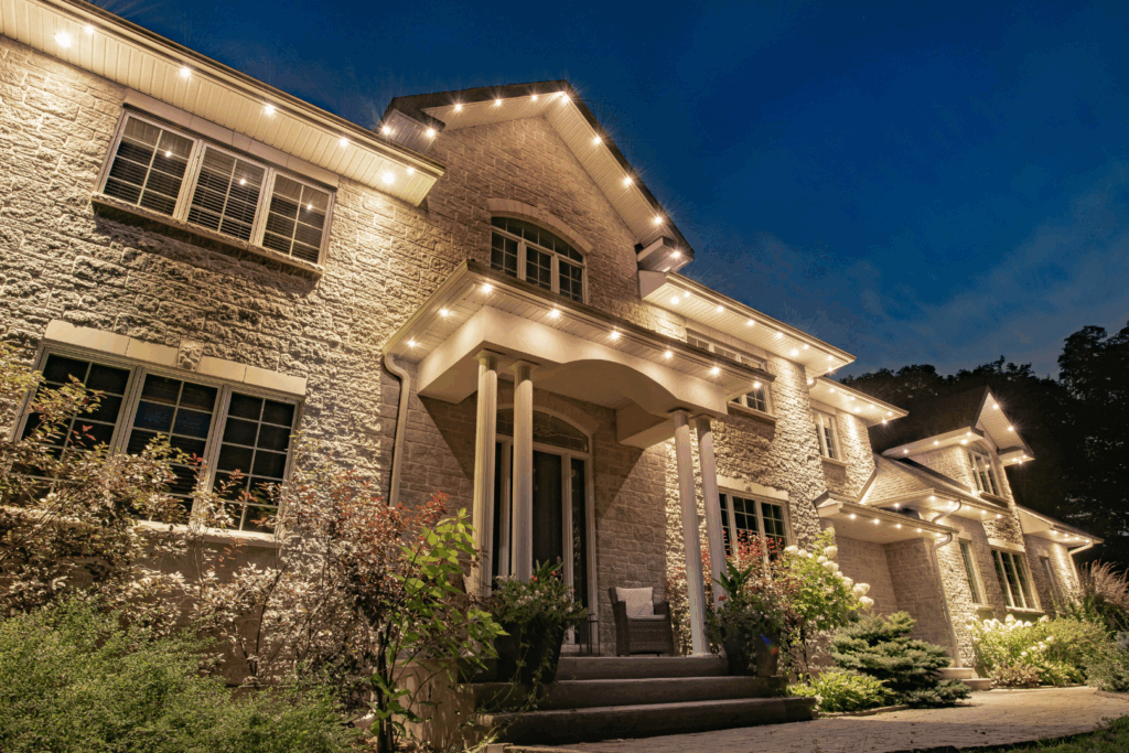 Each home is unique, and so is the installation plan. In most cases, the lights are installed along the outer edge of the soffit, positioned behind the fascia or trim, and face downward for a clean, discreet appearance. That said, we also offer alternative installation solutions to accommodate different home designs or preferences, such as face-mounting.